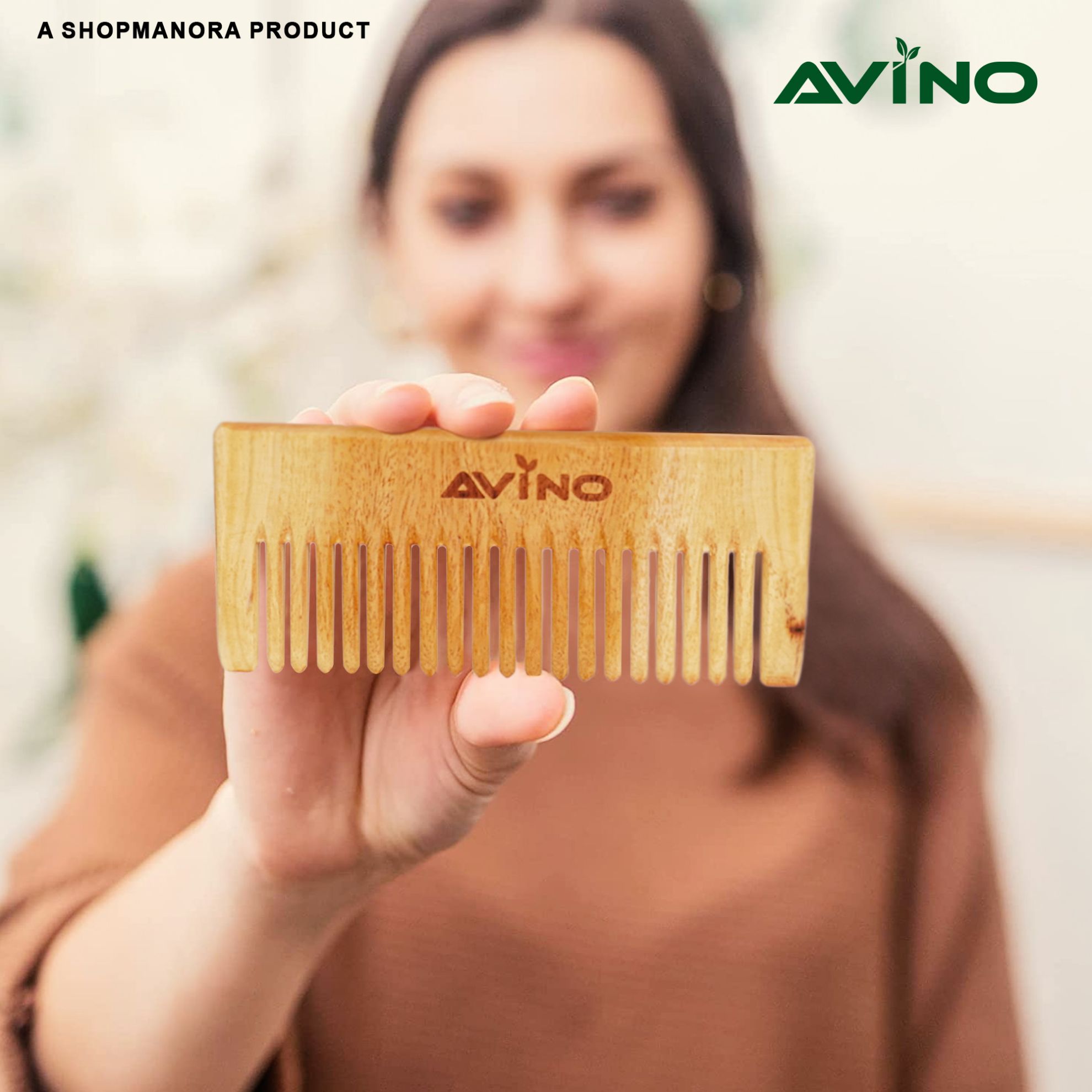 Avino neem wood comb ideal for all hair types for both men & women. Neem combs are believed to have a number of benefits for hair and scalp health, including anti-dandruff, moisturizing, strengthening, and rejuvenating properties.